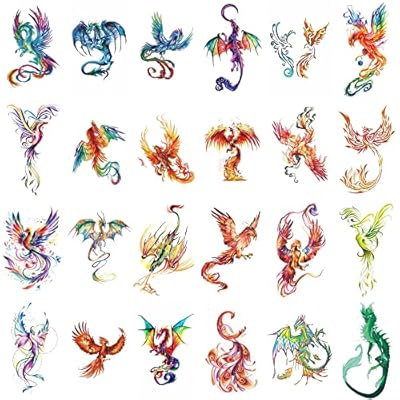 Amazon Com Dopetattoo 6 Sheets Temporary Tattoos Phoenix Birds Fire Bird Flying Legends Temporary Tattoo Neck Arm Chest For Women Men Adults 3 7 X 3 7 Inch Birds Tattoo Beauty Personal Care